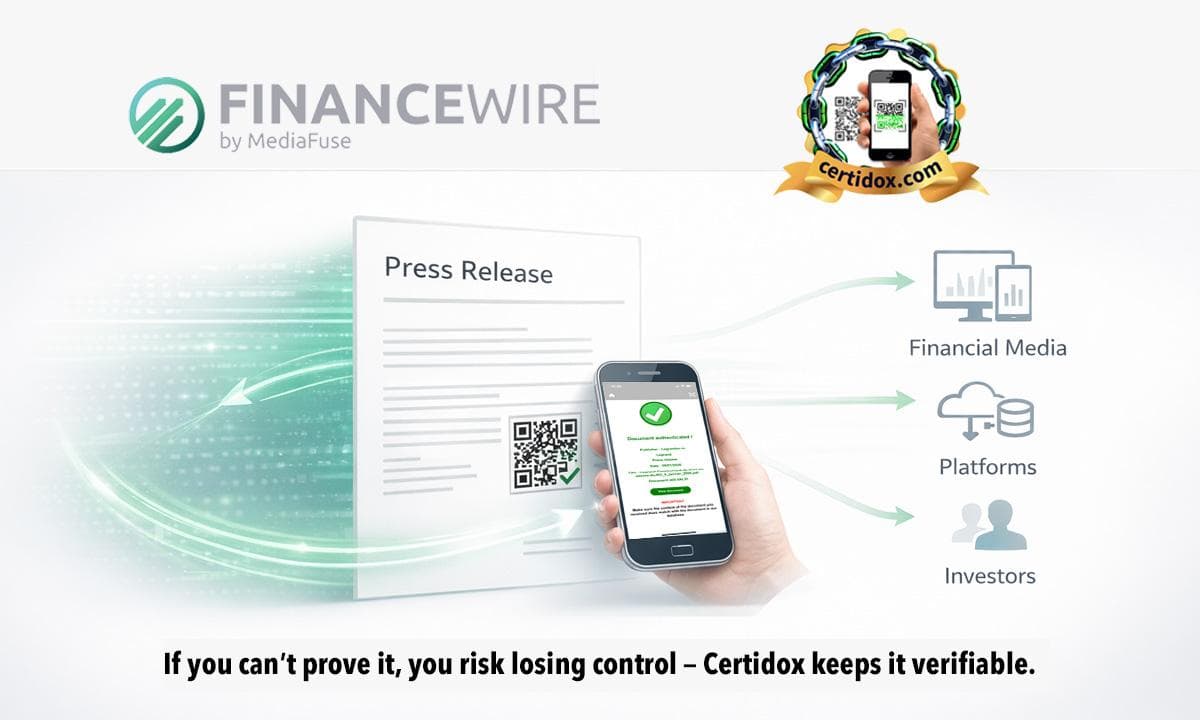 “If you cannot prove it, you do not control it,” said Rémy A. Eisenstein, Founder of Certidox. “With this partnership, press releases authenticated with Certidox are identified instantly — preventing false or manipulated content before it causes market or reputational damage.”