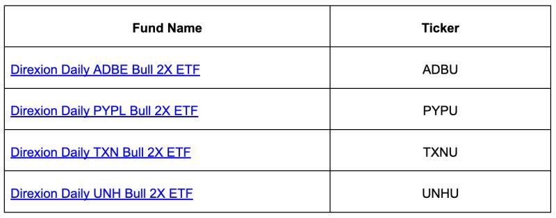 Direxion, a leading provider of Single Stock Leveraged & Inverse ETFs, today announced the launch of four new ETFs offering 2X daily exposure to Adobe Inc. (ADBE), PayPal Holdings Inc. (PYPL), Texas Instruments Inc. (TXN) and UnitedHealth Group Inc. (UNH). As trading activity increasingly centers on company-specific catalysts – from earnings and guidance to sector and macro developments – individual stocks are driving a growing share of short-term market moves. These ETFs are designed to provide targeted tools for expressing bullish views on four widely followed names across software, digital payments, semiconductors and healthcare.