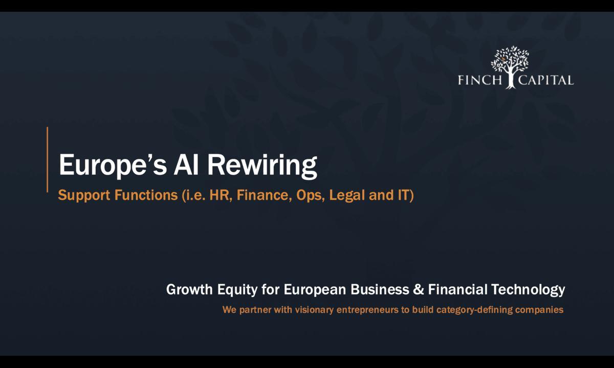 Finch Capital’s annual State of European Business Technology report spotlights a major theme: Europe’s AI Rewiring of Support Functions (i.e. HR, Finance, Ops, Legal and IT). The report reveals a decisive shift in how modern companies build and scale efficiently, harnessing AI to unlock deeper insights and significant performance gains. As growth gives way to profitability, businesses are increasingly focused on improving margins and productivity through AI-driven solutions – delivering value and insights to the front office and transforming support functions from “cost centres” into “performance centres.” What was once considered “back-office software” has become strategic infrastructure, powering automation, data-led decision-making, and value creation across all business functions.